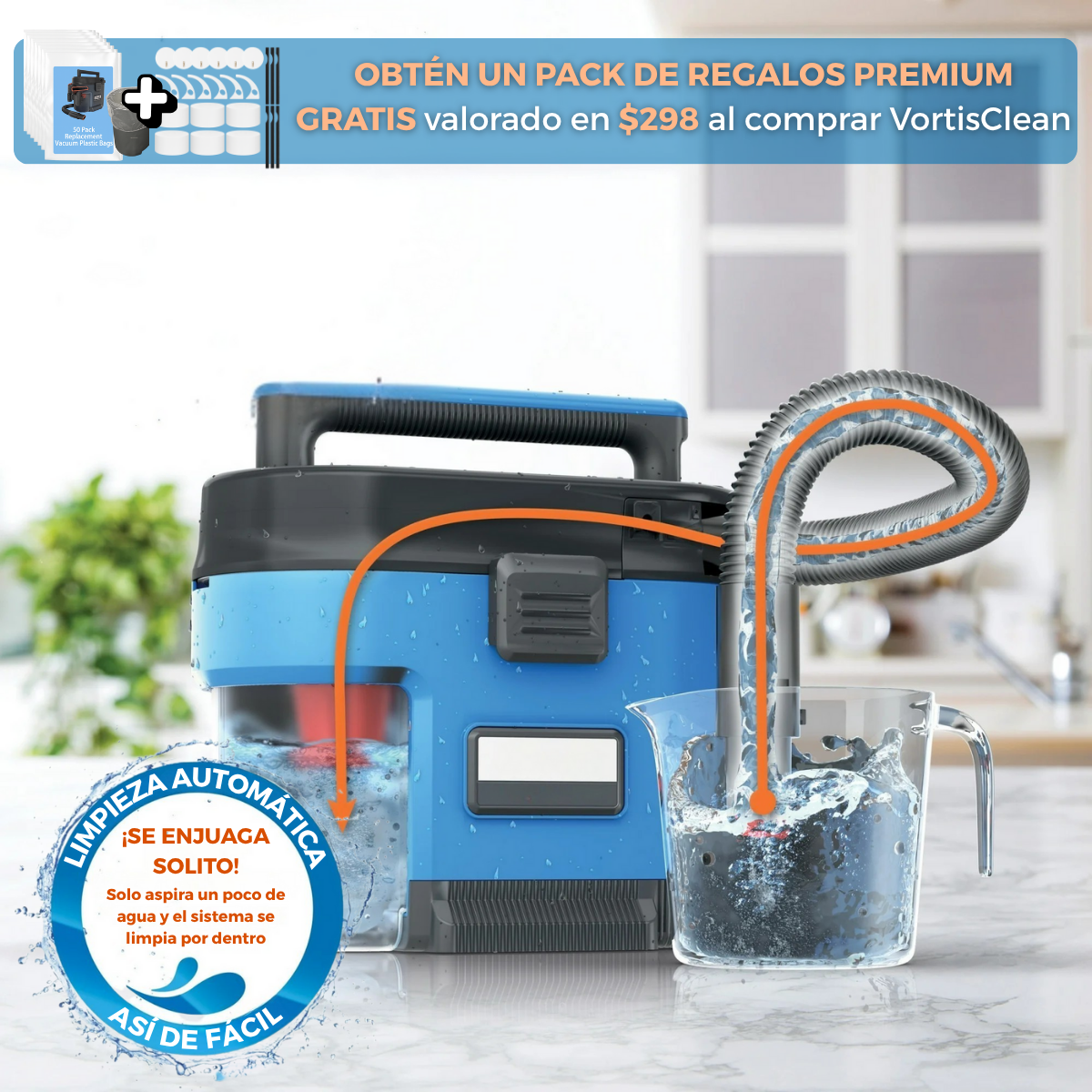 No. Su motor sellado y el sistema de filtrado inteligente mantienen una succión constante incluso después de varios usos. Además, el kit de repuestos incluido asegura que tu VortisClean™ siga funcionando como el primer día.
