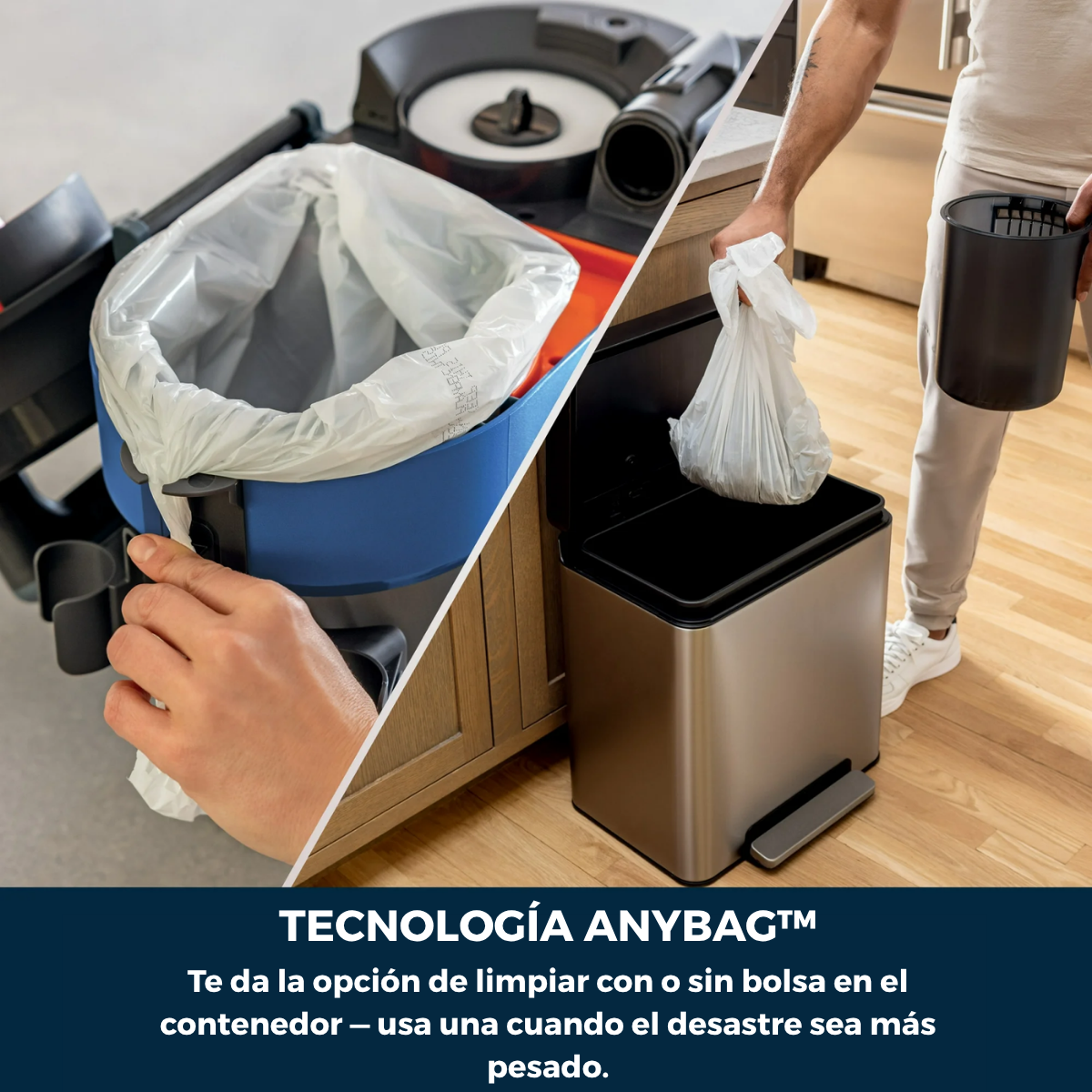 No. Gracias a la tecnología AnyBag™, puedes usar prácticamente cualquier bolsa plástica estándar para los trabajos más sucios. También funciona perfectamente sin bolsa cuando limpias líquidos o suciedad ligera.